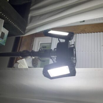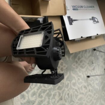 Once the light powers up, adjust the lighting angle to your desired position by moving the LED head and panels. Exercise caution when installing, as the light panels can heat up; also, do not stare directly into the bright LED lights.