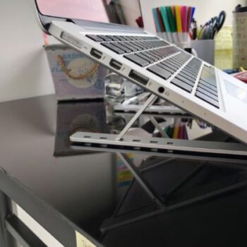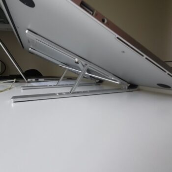 I wish I purchased this much sooner. My neck and headaches have stopped as soon as I put this up. Holds up pretty good as I have 2 kittens that just have to behind my laptop and play while I’m working. Some how it still stands and my laptop hasn’t moved. Don’t take me wrong they did hit one of the legs yesterday and it all came down. Kittens are getting bigger