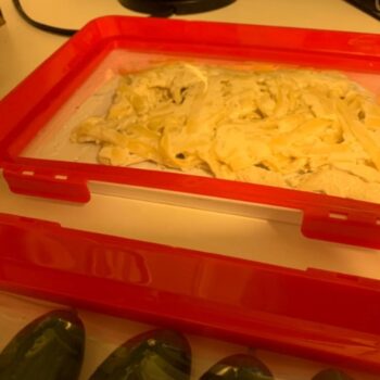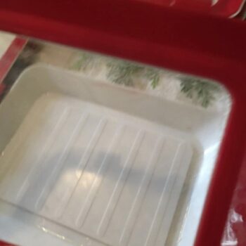 I had been tempted by advertisements for these food preservation trays for a while and finally took the plunge. I think they are great! You can put an entire lunch in them or leftovers and they are much more compact than ziploc containers. The clear cover is stretchy so it can accommodate things with a bit of depth like a sandwich or a banana. They are neat because you can put your lunch in them and they take up about the same amount of space as a laptop in your bag. It slides easily in between your books. In the fridge, they nest together well. Instead of layering leftovers between wax paper, I can divide them up in separate trays and stack them. So far they wash well and return to their original shape after using them. I’m glad I tried them! I will be buying a couple more.
