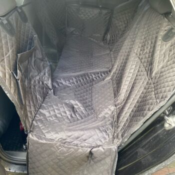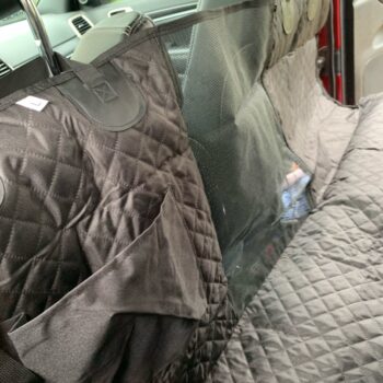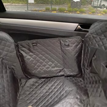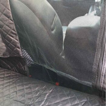 The quality is very good, it has zippers on both sides, so super easy to cover the back seat. Also came with a seatbelt for the pup. The picture is in a jeep grand Cherokee