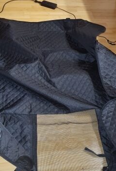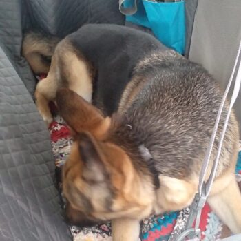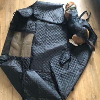 Great thing. Fits great into Polo sedan, and thick enough to keep the Stafford busy chewing the zippers.