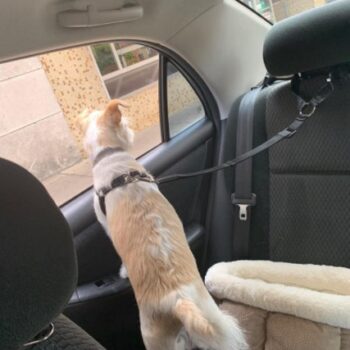 Like a leash, our seat belt has an adjustable leash with buckle that clips to secure snugly to any headrest in a car. When secure, the clip on the leash snaps to any dog collar you have on your pet.