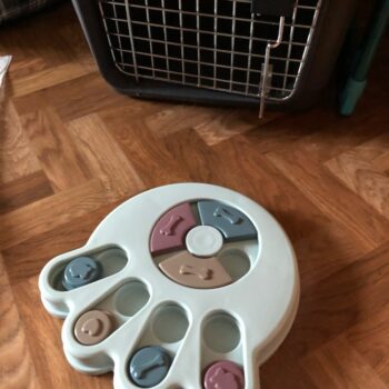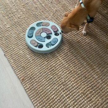 So my dog is a confirmed genius- just kidding but she solved this in less than a minute. I thought about getting a more complex puzzle but thought I’d try this one out first in case she wasn’t a genius. The only negative aspect of the product is that if your dog chews up toys she will probably chew up the puzzle pieces. So this is a puzzle I’d recommend using if you are home with your pet. I’ll look for another one to use when I am gone to keep her busy mind occupied.
