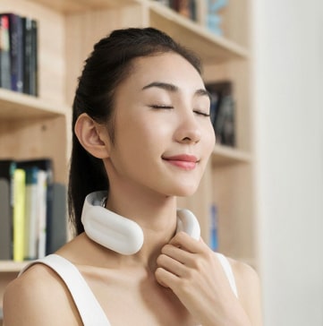 I am suffering from neck pain badly. I feel much better every time after I use the massager for 15 minutes. It’s wireless and has a separate remote. It’s very moveable and portable. The two connectors are full of elasticity. They are able to move down and extend out a little bit, so it fits my neck perfectly. It’s really really comfortable and soft. It can warm up right around my neck area. The warming sensation is really nice. It delivers pretty decent pulsations. The battery life is really amazing. I recharge it about every 3 weeks. It is doing really great. It would be better if the remote has a screen and can show the current level and mode.