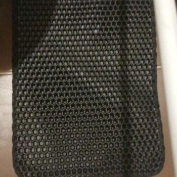 With this mat it’s now much better. The holes are big and all the litter which comes out of the box drops onto the mat below so there is no litter left on the surface and therefore less for my cat to spread as he walks away.