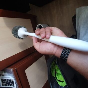 This toilet brush is exactly what I needed. Nothing dirty sticks to it and the water you rinse it with evaporates so there’s no odor or bacteria hanging around. It’s tough and you won’t have to buy a new for a long long time.