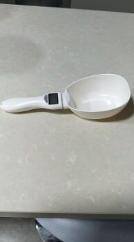 Our Pet Food Measuring Spoon With LED Display is made from sturdy ABS plastic, and the actual serving scoop is detachable for easy cleaning.