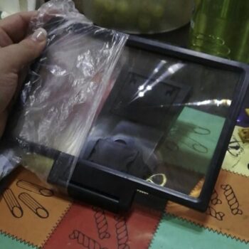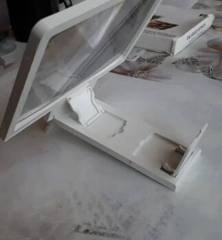 This is a neat gadget to have if you use your phone a lot to watch movies and TV. It’s clear when it magnifies. I have an iPhone 11 Pro Max with a case. I keep the case on (to answer one person’s question). It’s foldable, so it stores easily. I honestly just put it on my chest and watch it while I’m in bed. When I’m done, I fold it up and put it in my night stand. For the price, and to help save your eyes, I recommend this.