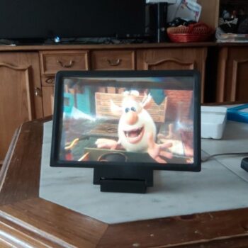 Overall, I'm quite pleased with this product. A simple and stylish way to make my cell phone image bigger. The image is a bit blurred, but that is to be expected based on the nature of the screen. Better quality than I was anticipating, however! My only complaint is that it feels like the screen itself should be facing the other way (with the smooth side facing out rather than textured side), feels like the image would have been very so slightly smoother that way. Currently it is being utilized by my 7 year old as a stand for his tablet (which has the same size screen as this one), but he's loving it for that, too!