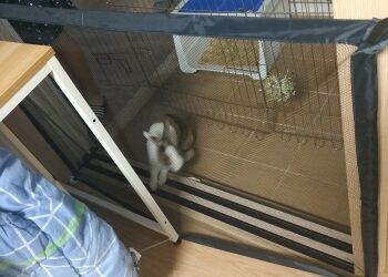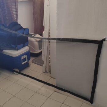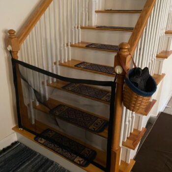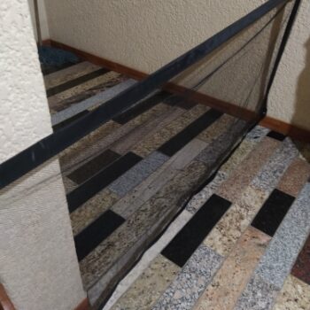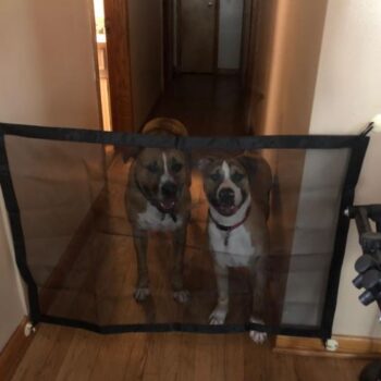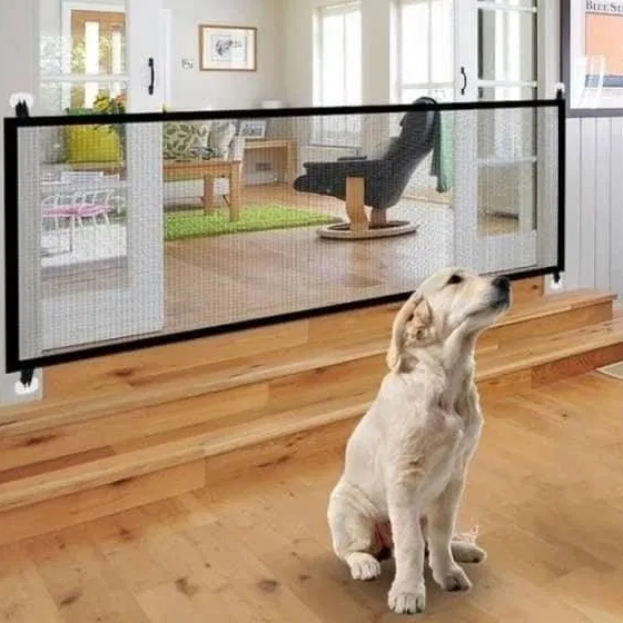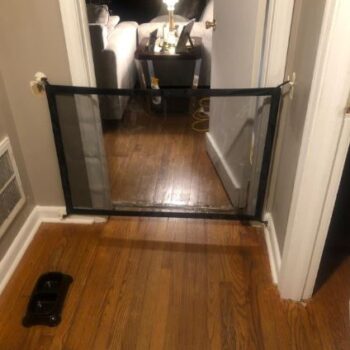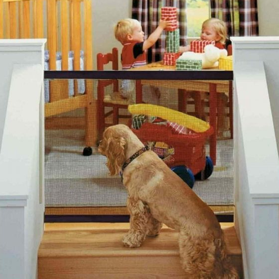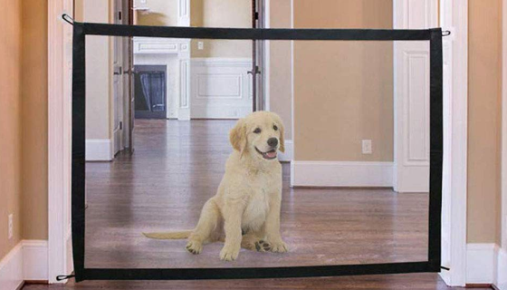 Well, here’s one way to keep your pooch in place. With no running around the house or walking into the room of construction. Our Portable Safety Net is the easiest and most convenient way to keep your dog from freely wandering around the house. It’s perfect for doorways, between walls, or even stairwells. And when it’s time to let your dog run free, simply move the net.