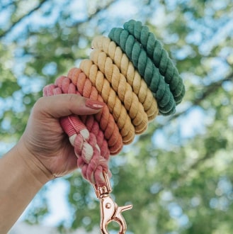 I love this braided rope leash! The rope feels soft and with its thickness, it is very easy to hold. It also seems more flexible/stretchy than typical nylon or leather leashes, which I like. It seems very durable unless your dog starts chewing it. My puppy was attracted to the rope. The colors are very nice too.