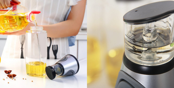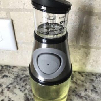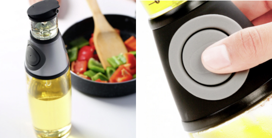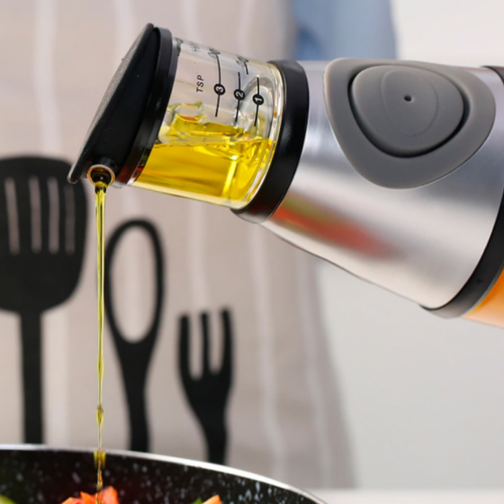 There’s nothing more wasteful than accidentally pouring out a dollop of oil that’s way more than you need. When an excess of oil is poured, you either have to use it with the food you’re cooking (which can lead to burning) or pour some of it out (which is wasteful). Our Scaled Oil Dispenser makes measuring the amount of oil you need much easier, with a printed scale chamber atop the bottle for easing eyeballing.