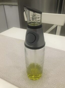 Our Scaled Oil Dispenser is made from borosilicate glass that is temperature-resistant, while the spout is made of food-grade plastic. All components are hand- and dishwasher-safe and are designed to work fine by a hot cooking surface or wok. Our bottles are also well-sized, measuring 11.2 x 3 in (L x W) for easy storage and blending in on your kitchen counter.