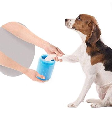 We have an 80 lb German Shepherd and a 50 lb hound mix. They come in filthy! Our back yard is mostly dirt from them digging so when it rains their paws are so gross. This paw cleaner is easy to use and clean and does a great job on their dirty paws.