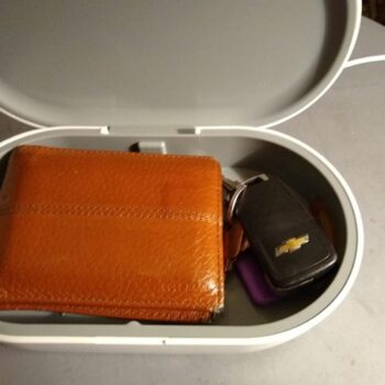 This portable disinfectant box is the best, I can take it wherever I go and disinfect my important items such as phone, my credit cards, my glasses and keys, I can also charge my phone by putting it on top of the box, it is perfect just what I was looking for.