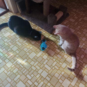 Two ball-shaped chambers on the windmill toy allow you to open up to fill with catnip, mint balls, or food even. Your order comes with two catnip light balls and two small jingly balls.
